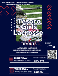 Create a lasting legacy at Tesoro for your son or daughter and donate to our Lacrosse program. Fall deadline - Nov 15th.